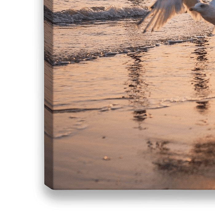 Koop dit vogel kunstwerk Meeuwen Vlissingen in Gouden Zonsondergang aan Zee van Femke Ketelaar op canvas, aluminium dibond, (ingelijste) fotoprint, behang en ArtFrame, op maat geprint in Fine-Art kwaliteit.