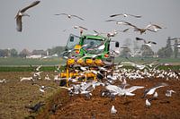 Meeuwen zien hun kans schoon wanneer er wordt geploegd. Op zoek naar wormen vliegen ze kris kras door elkaar achter de ploegende trekker aan. Dit is een beeld dat je vaak tegenkomt in de Noordkop, en dit wilde ik altijd al eens goed vastleggen. Naar mijn mening is dat goed gelukt, deze foto blijft je verrassen, elke keer zie je weer wat nieuws.