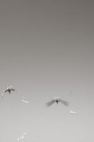 Deze zwart-wit foto vangt de serene eenvoud van meeuwen die zweven tegen een zachte, bleke lucht. De silhouetten van de vogels steken mooi af tegen de achtergrond, waardoor de beweging en vrijheid van hun vlucht voelbaar worden. Het spel van licht en schaduw geeft de afbeelding een tijdloos karakter, terwijl de minimalistische compositie rust en ruimte uitstraalt. Een beeld dat zowel verstilling als eindeloze mogelijkheden oproept.