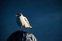 Meeuwen op een krib in Zingst aan de Baltische Zee, reikend in zee. Wilde vogels aan de kust.