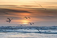 Koop dit vogel kunstwerk Meeuwen vliegen de zonsondergang tegemoet van Rik Verslype als print op canvas, aluminium dibond, (ingelijste) fotoprint, behang en ArtFrame. Voor jou op maat geprint in Fine-Art kwaliteit.