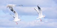 vliegende meeuwen in de lucht vol met wolken boven de zee.