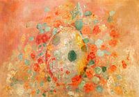 Bewerkt kleurrijk schilderij met bloemen en een ei in oranje geel en groene pastel kleuren. Oude meesters, het origineel Nasturtiums (1905) by Odilon Redon, een Franse kunstschilder die tot het symbolisme wordt gerekend.