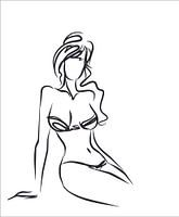 Illustratie van een vrouw half naakt in badkleding. Het rudimentaire beeld van slechts enkele lijnen geven het model weer met vrouwelijke vormen.