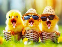 Drie grappige kuikens - een muurschildering als decoratieve kunst voor een stijlvol interieur.