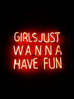 Cyndi Lauper songtekst tegen achtergrond in zwart