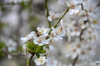 Deze foto is gemaakt vlakbij Dordrecht, waar de pont vaart naar Werkendam. Het is lente en de Meidoorn staat in bloei. De bloemen zijn mooi en ze ruiken heerlijk. Om de struiken is het een gezoem van jewelste, want de bijen zijn er ook gek op.