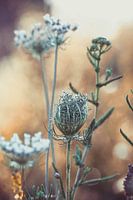 Close up van de wilde peen, een wildgroeiende plant die te vinden is op de uiterwaarden van de Nederrijn, bij Meinerswijk in Arnhem. De foto is bewerkt in warme bruine tinten.
