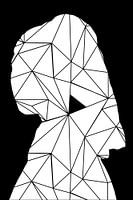 Het beroemde schilderij uit ca. 1665-1667 van de Nederlandse kunstschilder Johannes Vermeer, uit Delft, nu als moderne, abstracte kunst in zwart/wit en abstracte vormen.