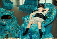 Koop Meisje in een blauwe leunstoel, Mary Cassatt als reproductie geprint op canvas, aluminium dibond, (ingelijste) fotoprint, behang en ArtFrame. Voor jou op maat geprint in Fine-Art kwaliteit.