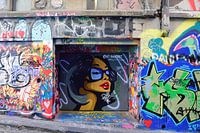 Normaal gesproken hebben we een hekel aan graffiti op gebouwen en andere constructies, maar niet in Hosier Lane in de stad Melbourne, Victoria, Australië. Waarschijnlijk omdat het zo overdreven is dat het een grote toeristische attractie is geworden die je moet bezoeken. We waren vooral dol op de afbeelding van het Meisje in een portiek.