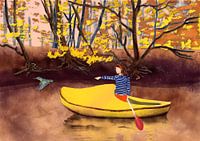 Koop dit landschapskunstwerk Meisje in klompboot van Angela Peters op canvas, aluminium dibond, (ingelijste) fotoprint, behang en ArtFrame, op maat geprint in Fine-Art kwaliteit.