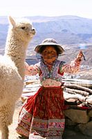 Meisje met alpaca in Peru