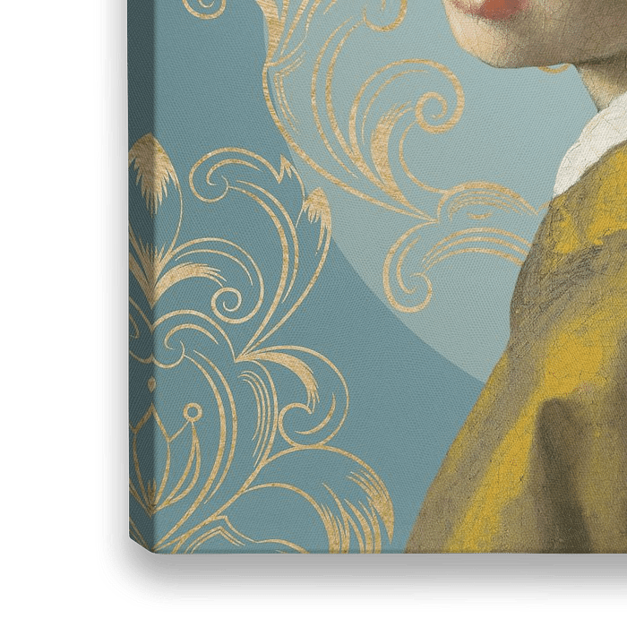 Collage met in de hoofdrol het door de Nederlandse kunstschilder Johannes Vermeer (uit Delft) in 1665-1667 geschilderde "Meisje met de parel". Dit werk pas zowel in een klassieke als in een moderne inrichting.