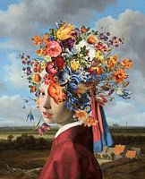 In deze versie is het meisje gecombineerd met bloemen uit stillevens van andere oude meesters en heb ik de kleuren van haar kleding daarop aangepast.