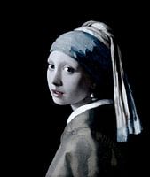 Meisje met de parel van Vermeer, monochrome tinten en zwarte achtergrond
