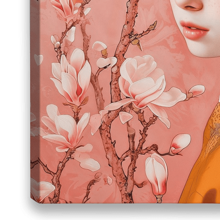 In deze versie is het originele meisje gepresenteerd tegen een achtergrond van levendige en bloeiende roze bloesemtakken. Het meisje draagt een oranje tulband en een oranje jurk.