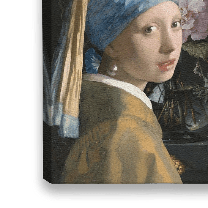 Bewerkte reproducties van de schilderijen "Stilleven met bloemen in een glazen vaas van Jan Davidsz. de Heem" & "Het meisje met de parel van Johannes Vermeer".