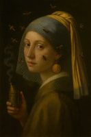 In zachte, mysterieuze kleurtinten wordt de blik van een jonge vrouw onthuld, die boeit met haar stralende pareloorbellen en delicate sluier. Haar mysterieuze glimlach en de delicate afbeelding creëren een unieke sfeer, ideaal voor een gezellige woonkamer waar kunst en gesprek harmonieus samengaan.