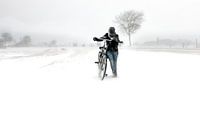 Meisje kon niet meer tegen de wind infietsen en liep met fiets aan de hand de weg tussen Zoutelande en Koudekerke in Zeeland. Wout Kok One2expose