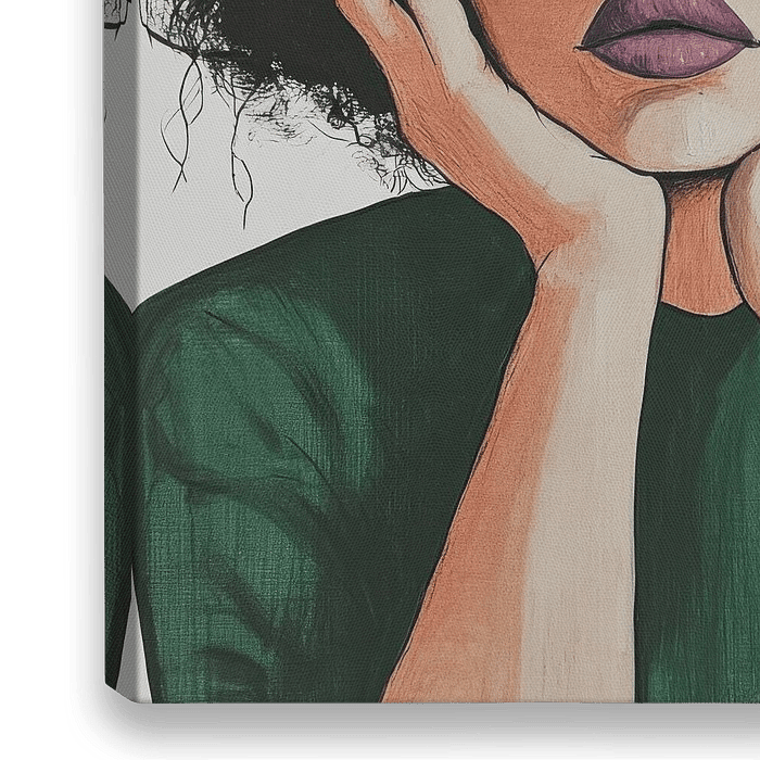 Dit kleurrijke en moderne kunstwerk kenmerkt zich door expressieve vormen en gedurfde kleurcontrasten. Een contemplatief portret van een melancholisch meisje met make-up. De strakke lijnen en minimalistische vormen geven het een eigentijdse uitstraling die goed past in een modern interieur.
