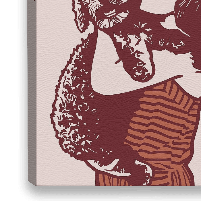 Een digitale illustratie van een meisje met haar hond. De tekening is gemaakt in een donkerbruine kleur met oranje accenten tegen een lichtroze achtergrond. De liefde tussen deze twee was zo mooi om te zien dat ik deze graag wilde vastleggen in een tekening. Door de kleuren en streepjes print heeft het ook een retro look wat ik altijd…