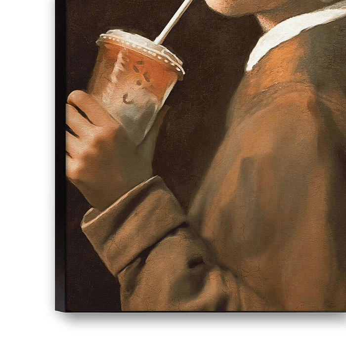 Gewoon een meisje met ijskoffie, oh ja, en ze draagt pareloorbellen