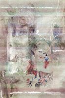 Samengestelde, gelaagde afbeelding van oude poesiealbum plaatjes. Met meisje, vogels, roos en meer.