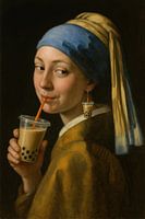 Koop dit portret Meisje met parel en bubbelthee van Poster Art Shop op canvas, aluminium dibond, (ingelijste) fotoprint, behang en ArtFrame, op maat geprint in Fine-Art kwaliteit.