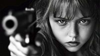 Dit beklemmende beeld toont een jong meisje dat een pistool ernstig en met intense ogen vasthoudt. Haar uitdrukking brengt een krachtige mengeling van angst en woede over die het thema van de afbeelding versterkt: de dreiging van geweld en misdaad. De scène is zowel verontrustend als emotioneel geladen omdat het wijst op de beangstigende realiteit van jongeren die in aanraking komen met vuurwapens en geweld. Door deze spanning te benadrukken wil het beeld inspireren tot een sociale herbezinning door de noodzaak van veiligheid, sociale verantwoordelijkheid en preventie van geweld te benadrukken. De noodzaak om onze kinderen en gemeenschappen te beschermen staat centraal in dit krachtige visuele statement.