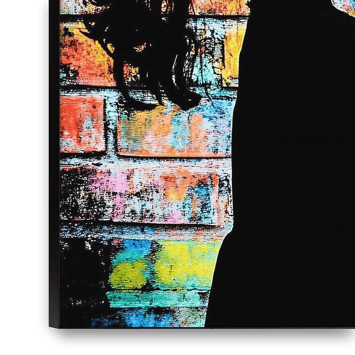 Dit ontwerp combineert de mystieke eenvoud van een silhouet met de levendige energie van een kleurrijke achtergrond. Het silhouet van een jong meisje met een pinwheel vormt een prachtig contrast met de explosie van kleuren op de achtergrond, waardoor een speelse en inspirerende sfeer ontstaat. Deze kunstfoto is ideaal voor moderne…