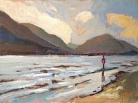 Mijn zus Miriam waadt hier in het Buttermere, Cumbria, Merendistrict. Dit was in 1976. Kwaliteitsreproducties hier op Werk aan de Muur. Origineel schilderij is te koop: www.briex.eu