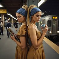 Twee meisjes met parel op station