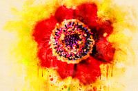Digitaal waterverf schilderij met een close-up van de bloem van meisjesogen, een kleurrijke plant welke ook wel bekend is onder de naam coreopsis verticillata.