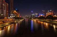 Lange belichting boven de Yarra River in Melbourne om 5 uur 's ochtends, kort voor zonsopgang.