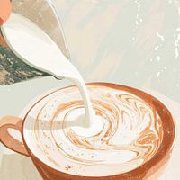 De glanzend witte melkstroom glijdt zachtjes in het glinsterende kopje terwijl het dromerige patronen in de koffie tovert. De harmonieuze combinatie van bruin en crème opent een wereld van gezelligheid waarin elke draai van de lepel een klein kunstwerk ontvouwt. Een feestelijk moment van rust in een hectisch dagelijks leven.
