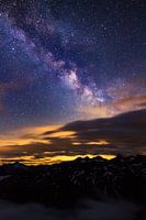 Prachtig uitzicht vanaf 2800 meter vanaf de Zwitserse Furkapas met de melkweg boven de wolken uit in de nacht