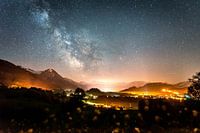 Melkweg en sterrenhemel in de Ober Allgäu met uitzicht op de Rubihorn, slotkerk St. Michael en Oberstdorf