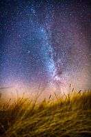 Liggend in de Helderse duinen keek ik omhoog naar de sterrenhemel. Ik heb geprobeerd om dit op de gevoelige plaat vast te leggen. Het oranje licht is afkomstig van Julianadorp.
