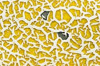 Deze foto toont een prachtige structuur en een bijzonder abstract patroon. Een patroon van grillige lijnen en vormen op een mooie gele ondergrond. Een zomerse gele ondergrond.