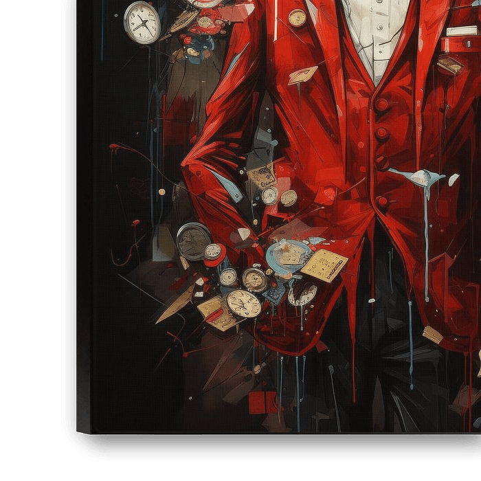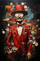 Een illustratie van meneertje tijd. De tijd als belemmerende factor voor het zicht op de mooie dingen van het leven.