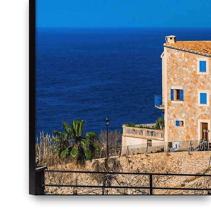 Koop de foto Mening van Banyalbufar dorp bij de kustlijn op Mallorca van Alex Winter op canvas, aluminium dibond, (ingelijste) fotoprint, behang en ArtFrame, op maat geprint in Fine-Art kwaliteit.