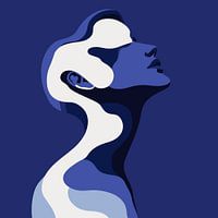 De kunstdruk "Human in blue" is een abstracte illustratie van een mens. Het hele werk is in blauwe tinten.