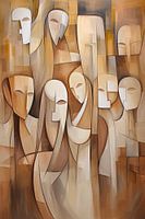 Dit werk biedt een abstracte benadering van menselijke figuren, waarbij de vormen zijn vereenvoudigd tot essentiële lijnen en kleuren. De compositie is dynamisch, waarbij de figuren lijken te communiceren of in interactie te zijn, maar zonder expliciete details. De kleurkeuze varieert van zachte tinten tot krachtige accenten, waardoor een emotionele lading ontstaat die uitnodigt tot reflectie. Het minimalistische karakter van dit werk zorgt ervoor dat de focus ligt op de beweging en de subtiele nuances van de menselijke vorm. Dit stuk past perfect in een eigentijds interieur, waar het een energieke, maar toch verfijnde sfeer creëert.