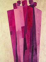 Details: abstract, mensenfiguren, paars, roze, moderne kunst, geometrisch, abstract schilderij, kunst, lichte achtergrond, vormen