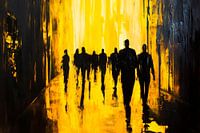Koop dit schilderij Mensen in geel licht van Poster Art Shop als reproductie geprint op canvas, aluminium dibond, (ingelijste) fotoprint, behang en ArtFrame. Voor jou op maat geprint in Fine-Art kwaliteit.