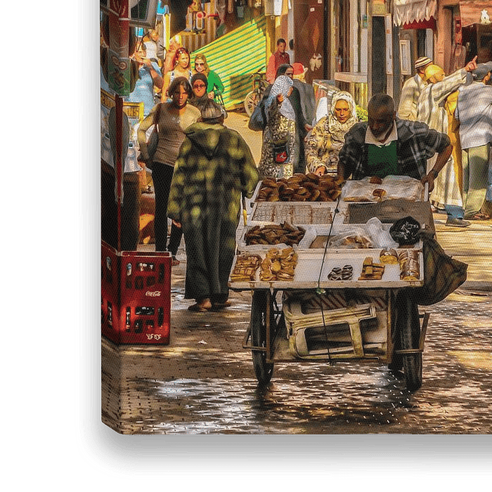 Mensen in kleurrijke steeg in de medina van MArrakesh in Marokko
