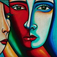Dit werk in een figuratieve en expressionistische stijl geschilderd in acrylverf heeft als onderwerp de relatie tussen twee of meer mensen. Ik heb bewust de expressionistische meesters goed bestudeerd en geprobeerd de veelzijdigheid van alle kanten van een gezicht op een gestileerde manier weer te geven. Ik heb ook geprobeerd de spanning tussen mensen weer te geven, want hoe je het ook bekijkt, er is altijd een soort spanning aanwezig in een realiteit; dit in de goede en in de slechte zin van het woord. Beschouw dit werk als een spiegel van je eigen relatie.