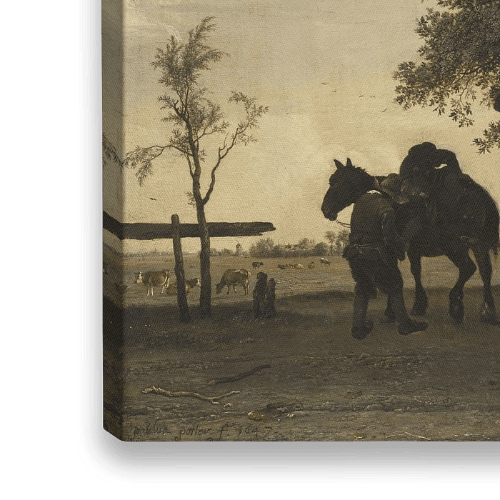 Koop Mensen met paarden bij een stal, Paulus Potter als reproductie op canvas, aluminium dibond, (ingelijste) fotoprint, behang en ArtFrame, op maat geprint in Fine-Art kwaliteit.