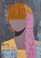 Details: abstract, mensfiguur, textuur, roestbruin, roze, grijs, zwart, gestileerd, blokken, lijnen